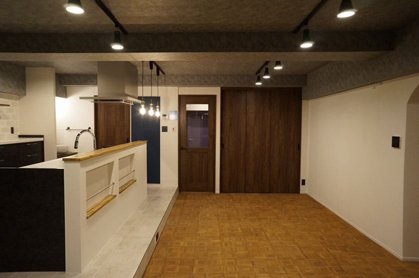 ミルフィウッド オーク クラスラスティック 乱尺 ■個人邸 <形状>複合フローリング 乱尺 <仕上げ>オイル着色塗装品 <サイズ>18×190×400~1400㎜